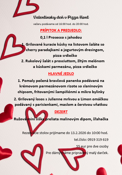 Sobota - Nedeľa od 11.00 hod. do 22.00 hod.